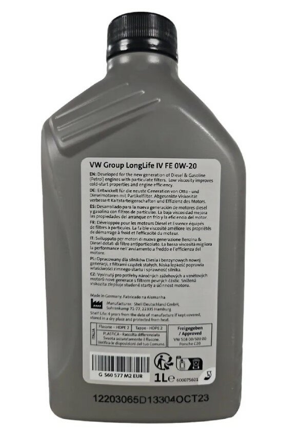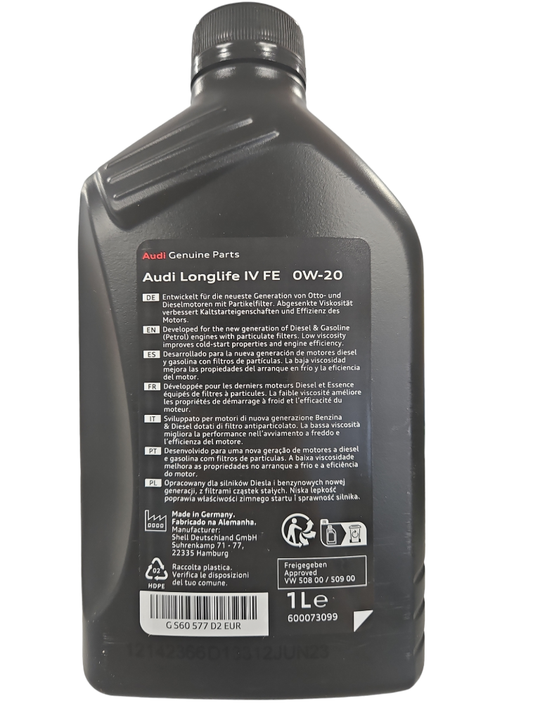 Моторное масло VAG GS60577M2 LongLife IV FE 0w20 VW-508.00/509.00 1л