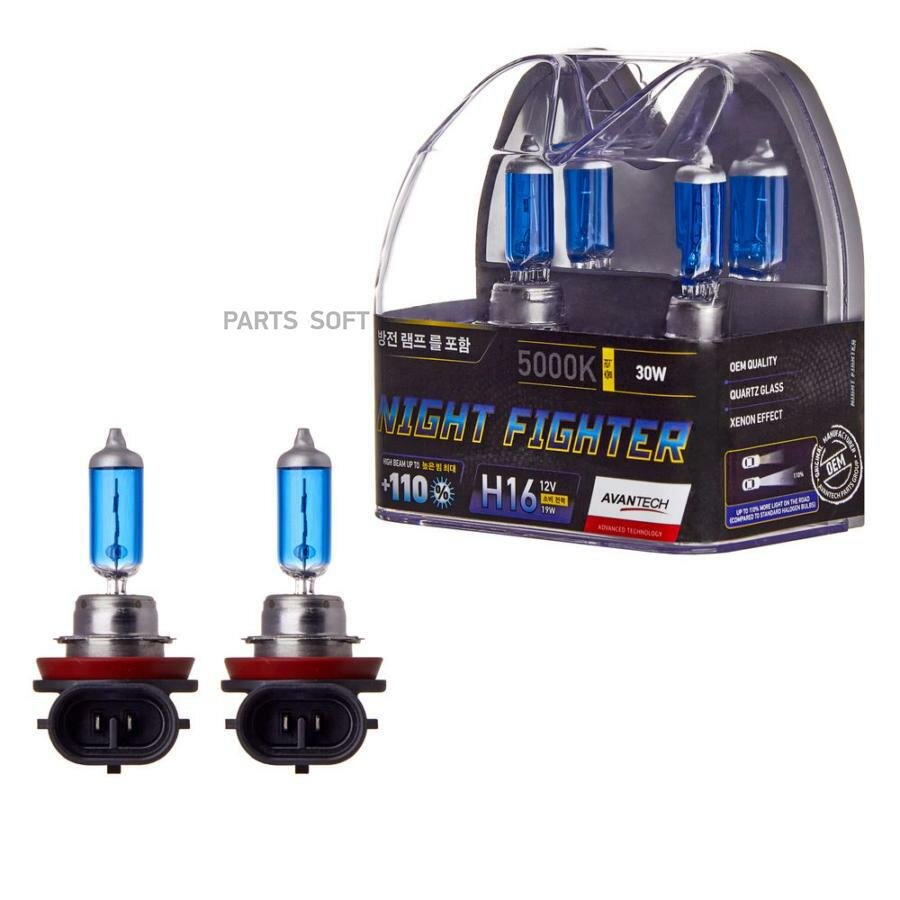 Лампа галогенная Avantech Night Fighter H16 12V 19W 5000K, 2 шт. (блистер)