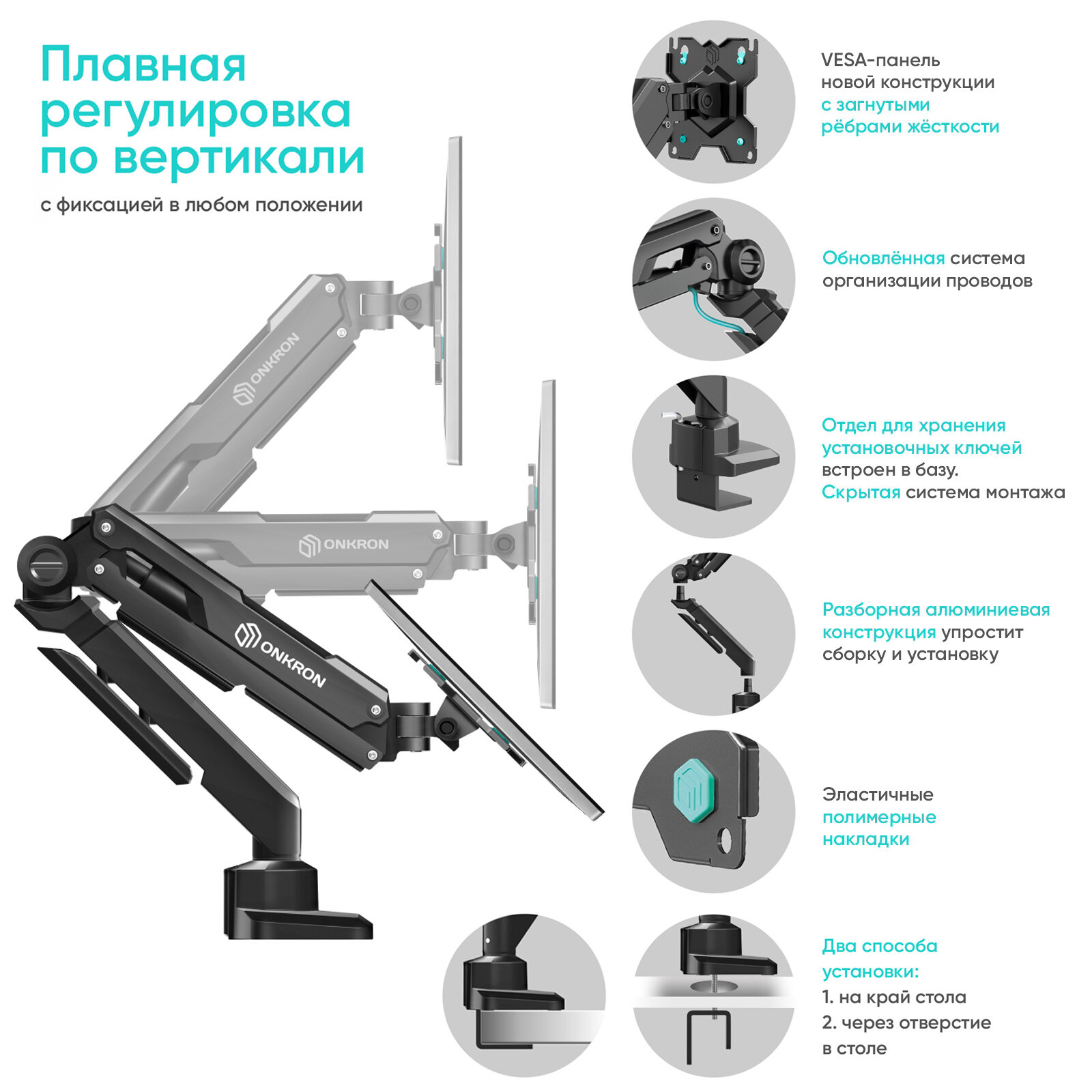 Крепление ONKRON G90 для монитора 13"-34", настольное, до 10 кг, черный интересное: