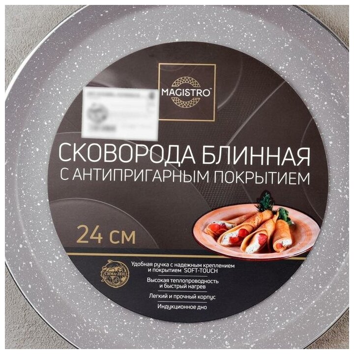 Купить Доляна Сковорода блинная Доляна Natural. Brown, d=24 см, ручка soft-touch, индукция, антипригарное покрытие, цвет серый