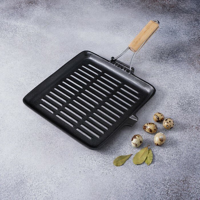 Сковорода гриль чугунная Доляна «Квадрат. Гриль», 26×26 см, съёмная деревянная ручка
