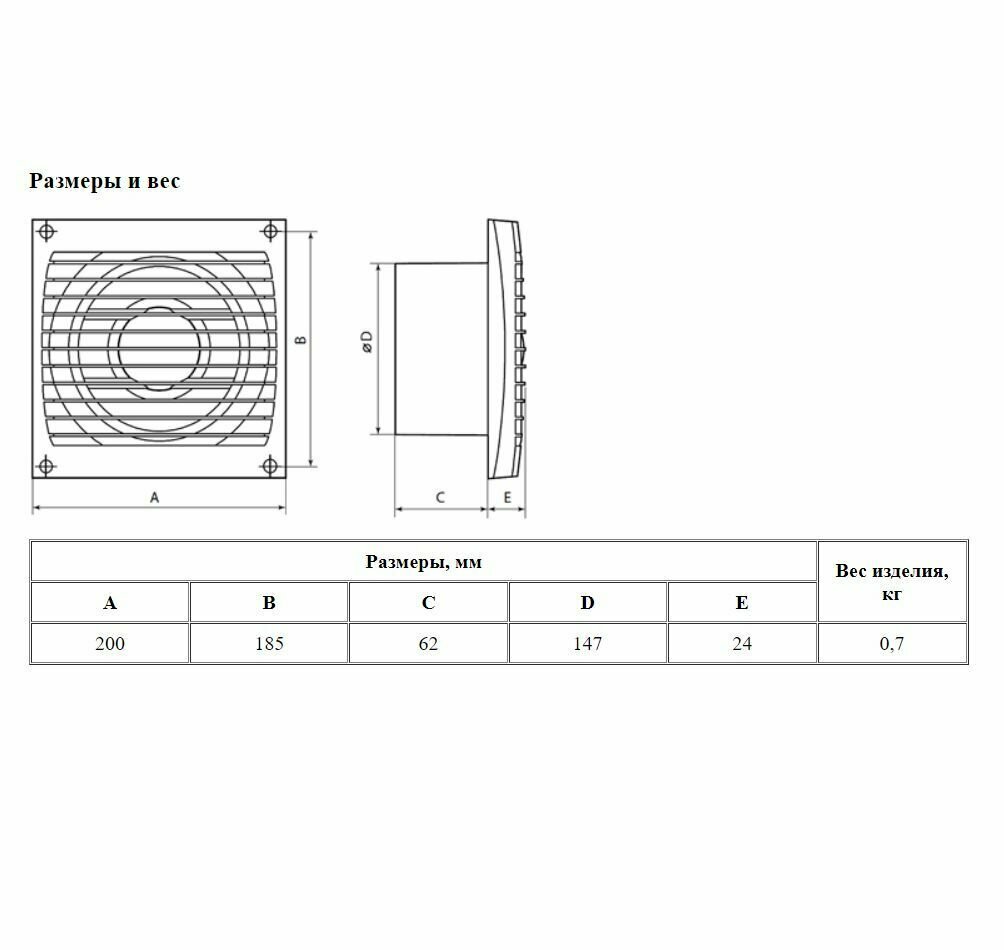 Вентилятор вытяжной бытовой настенный диаметр 125 С (175х175х84 мм, белый, IP24, 14Вт, 36дБ)