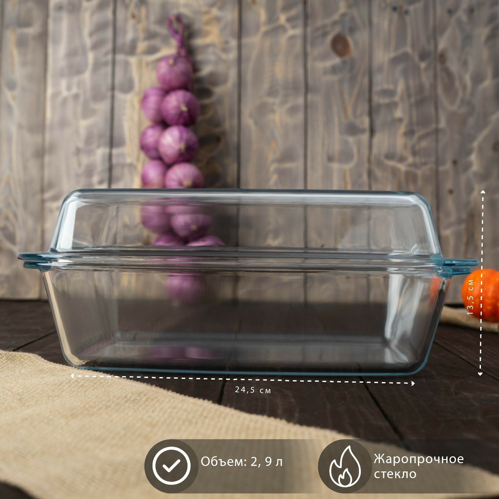 Кастрюля из жаропрочного стекла для запекания «Утятница», 2,9 л, 24,5×20,5×13,5 см, с крышкой