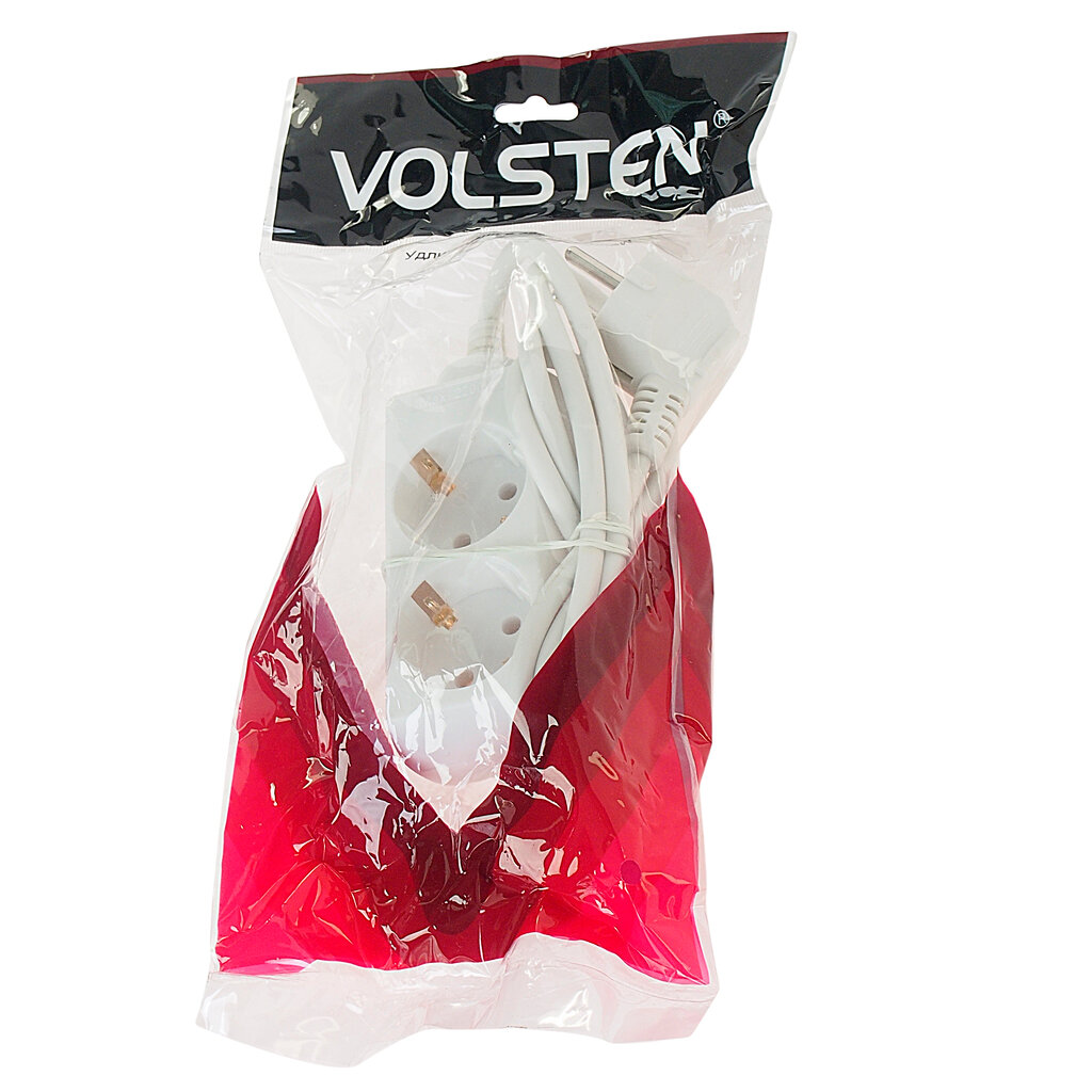 Купить Удлинитель сетевой 1.5м 10А 2200Вт 2 гнезда с заземлением белый Volsten S 2x1,5-Z