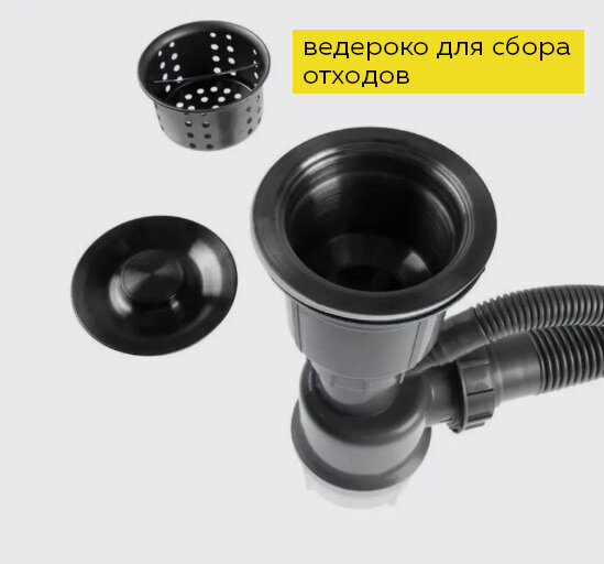 Мойка кухонная Aflorn Af96045f, врезная, S=3,0 и 0,8 мм, 60х45х20 см, сифон, графит Aflorn 6957249 .