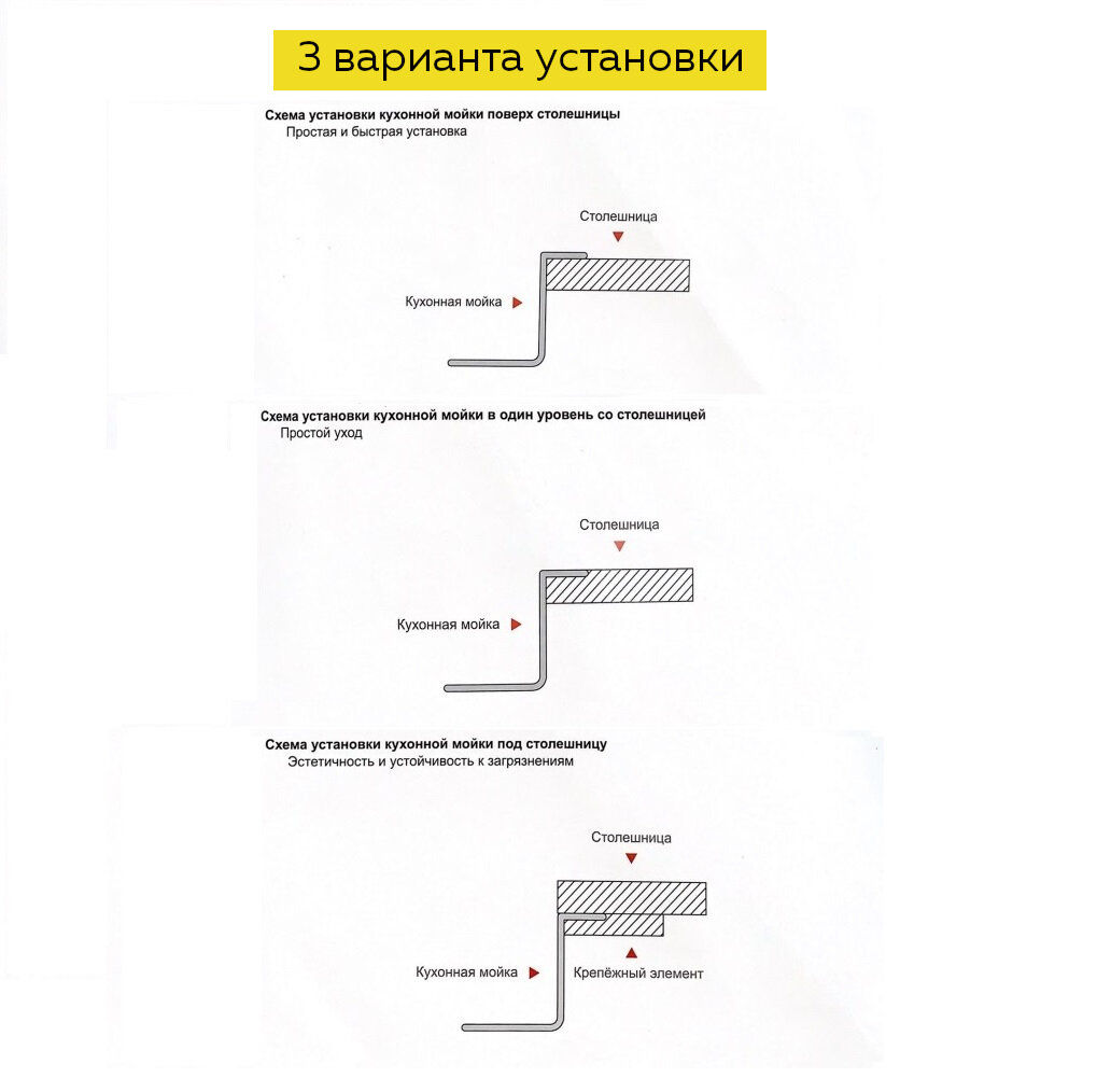 | Особенности | отверстие под смеситель / сливная арматура |
