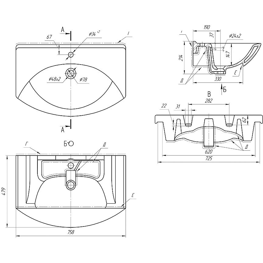 Умывальник Dreja Лагуна 75 028230