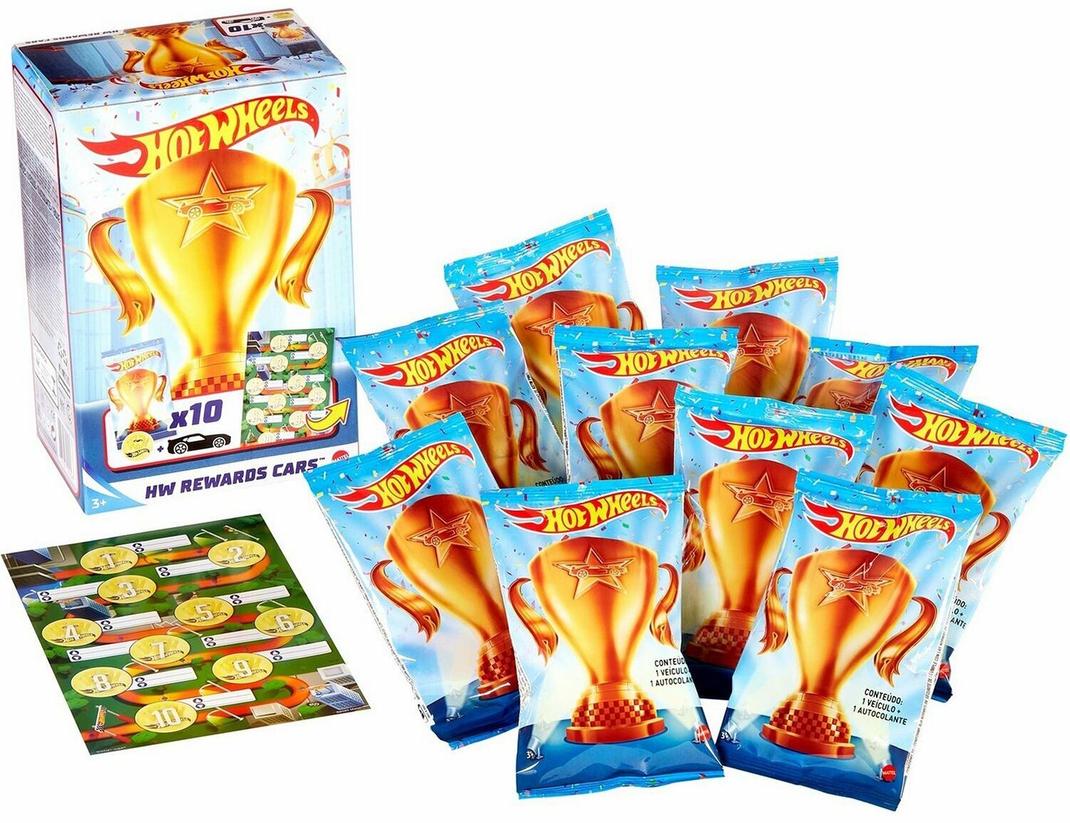 | Плюсы: | В коробке 10 индивидуальных упаковок с машинками и стикерами, лист для стикеров, машинки оригинальные |