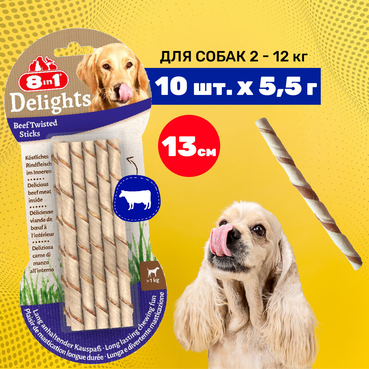 Лакомство 8IN1 Delights Beef Twisted Sticks 10шт., с говядиной для собак