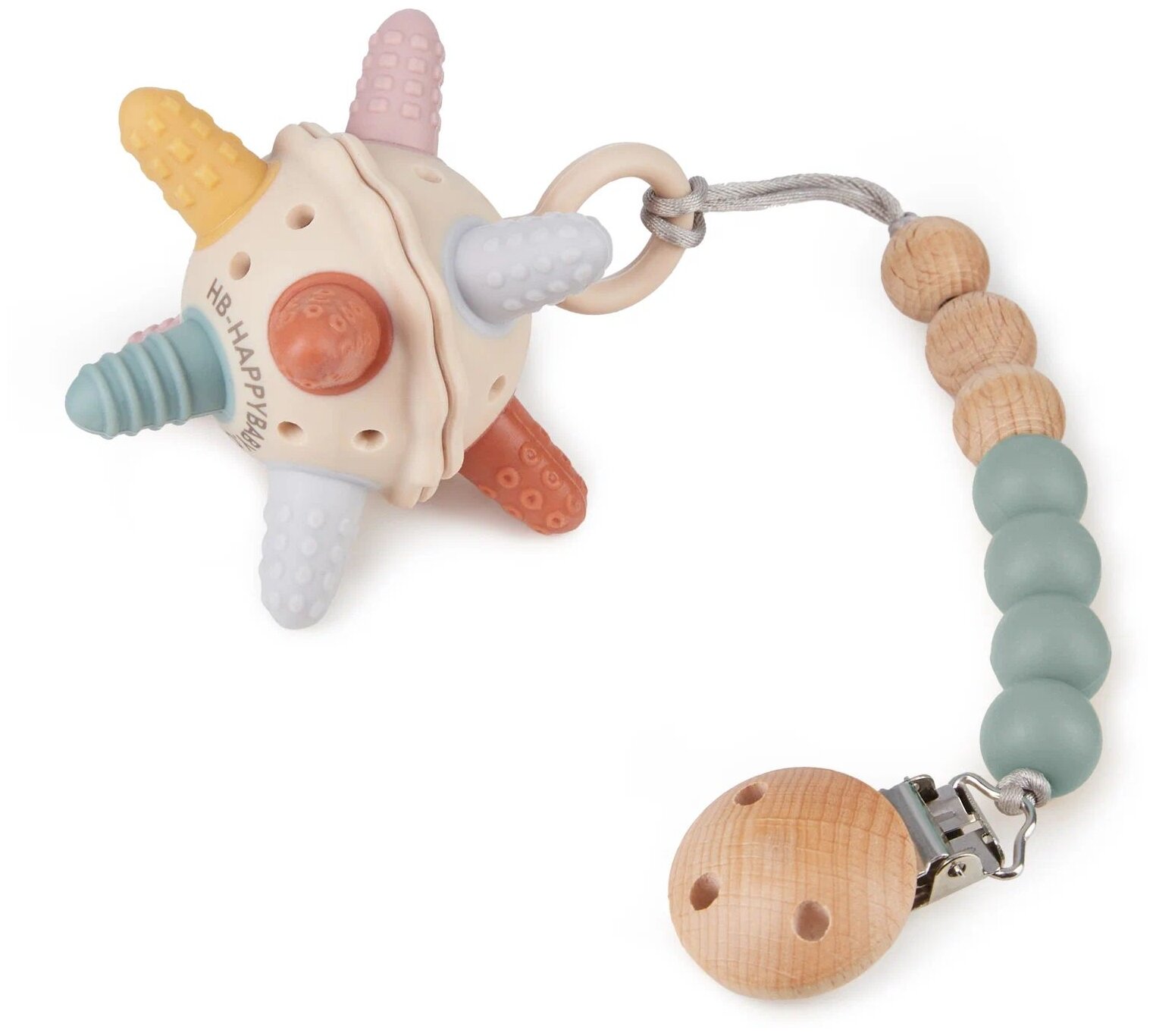 Держатель для пустышки Happy Baby держатель для соски, на прищепке, силиконовые бусины, бежевый