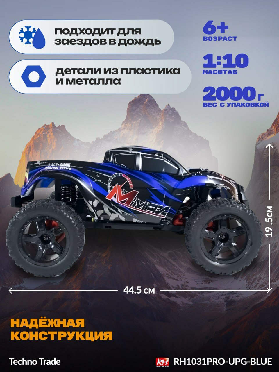 Купить Радиоуправляемый монстр Remo Hobby MMAX PRO UPGRADE 4WD 2.4G 1/10 RTR-RH1031PRO-UPG - Синий