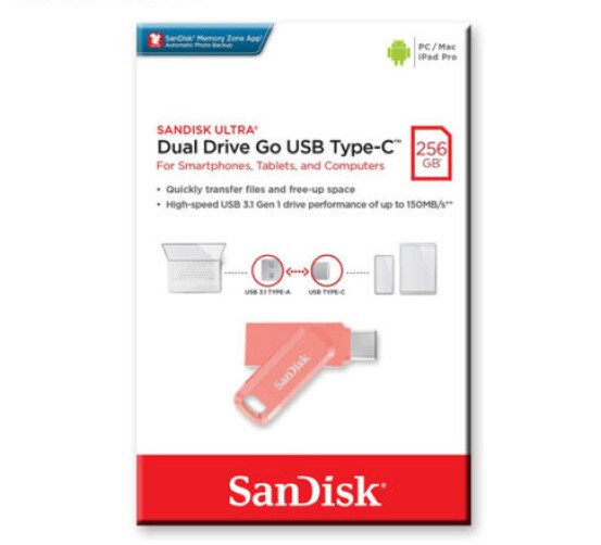 SanDisk 256Gb Ultra Dual Drive Go USB Type-C 3.1 150MB/s, розовый SDDDC3-256G-G46PC, 1шт.