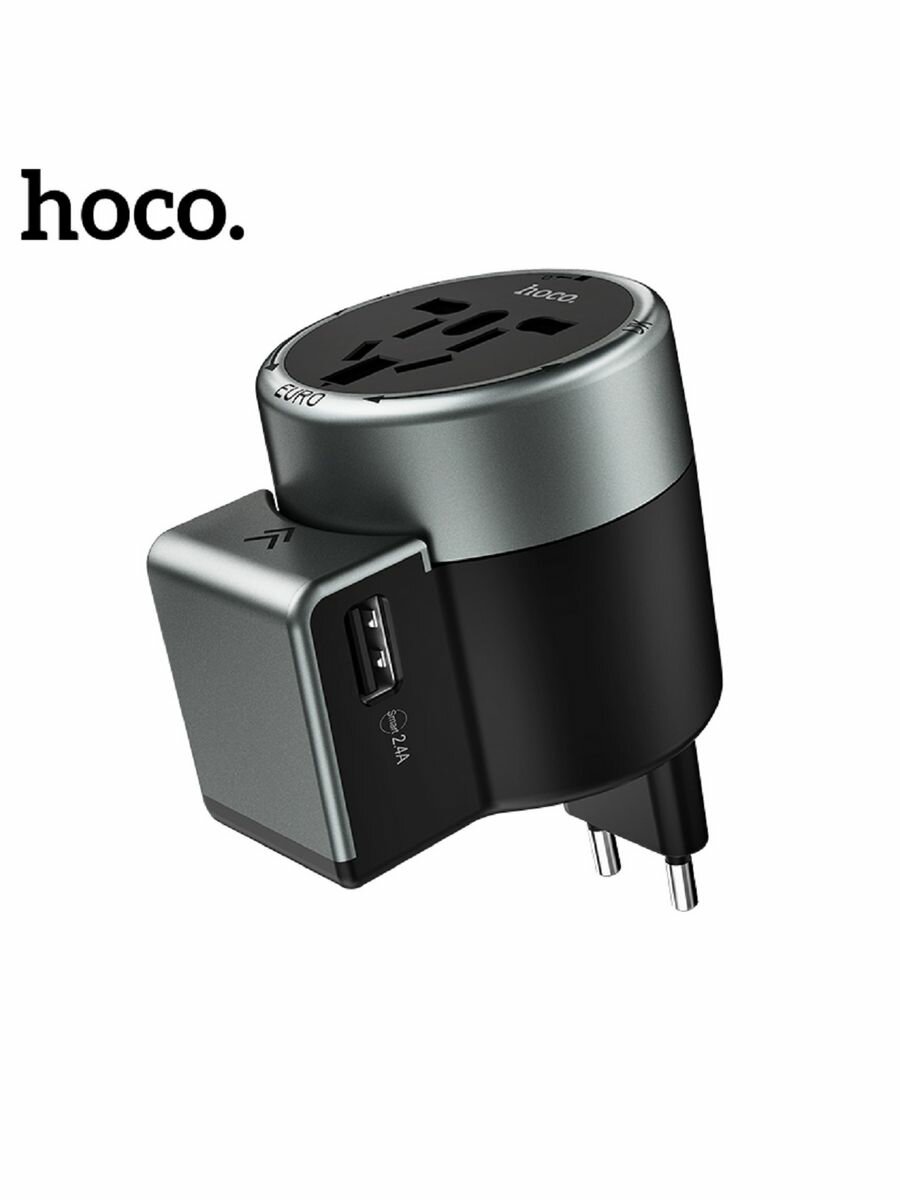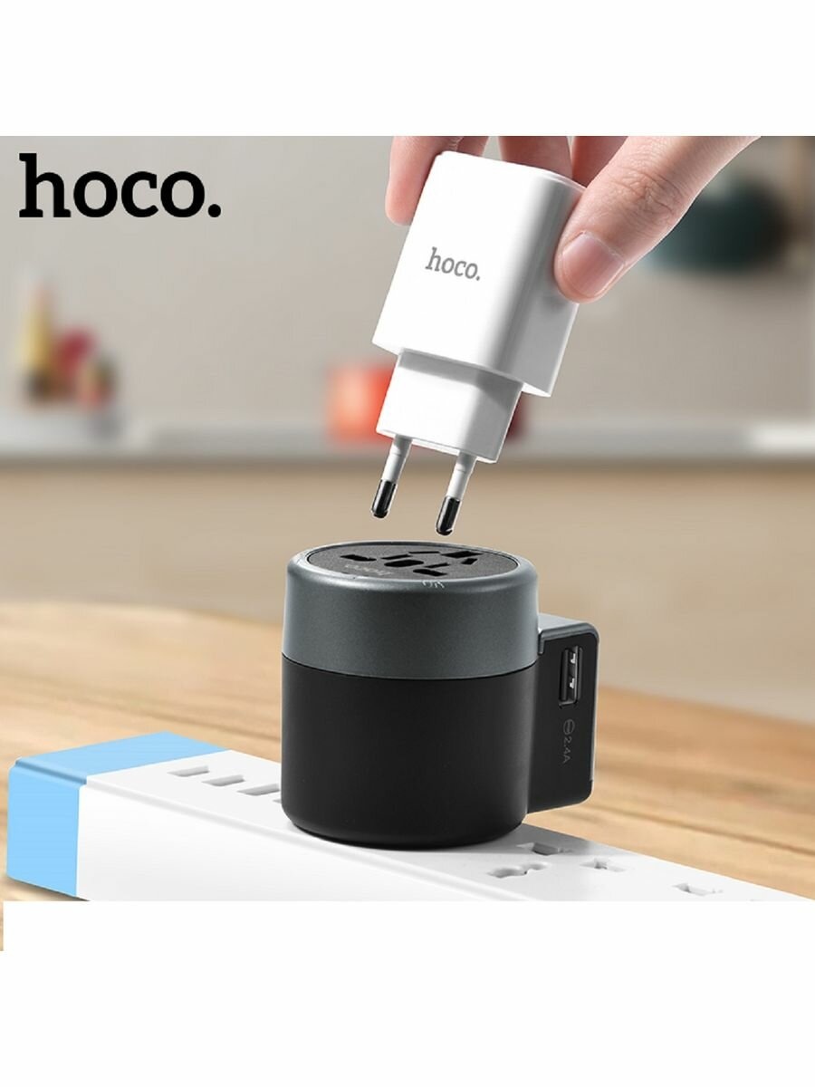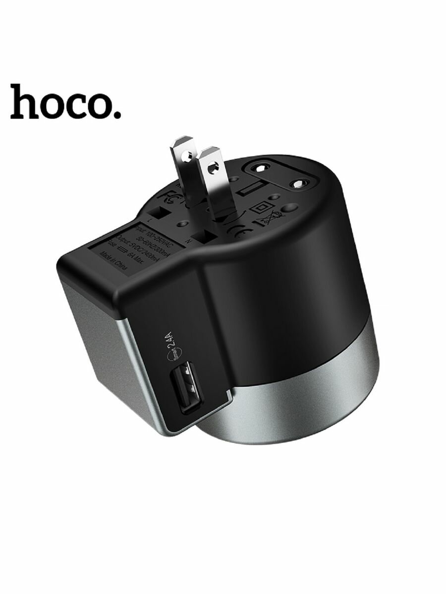 Зарядное устройство для всех стран HOCO AC4 Universal Convertible USB + конвертор, 2.4A, черный интересное: