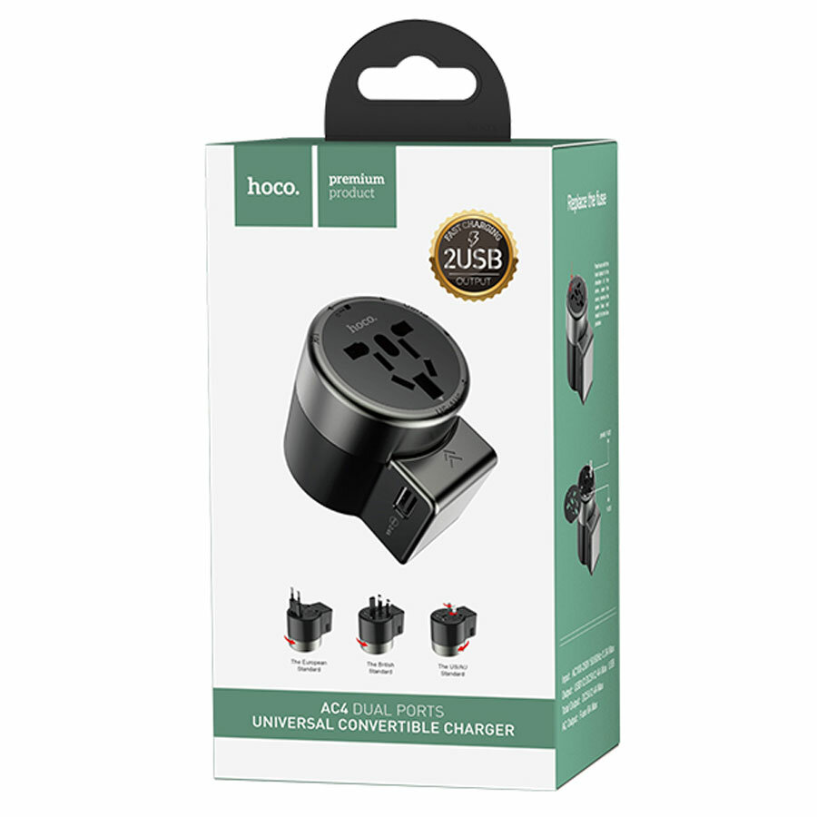 Купить Зарядное устройство для всех стран HOCO AC4 Universal Convertible USB + конвертор, 2.4A, черный