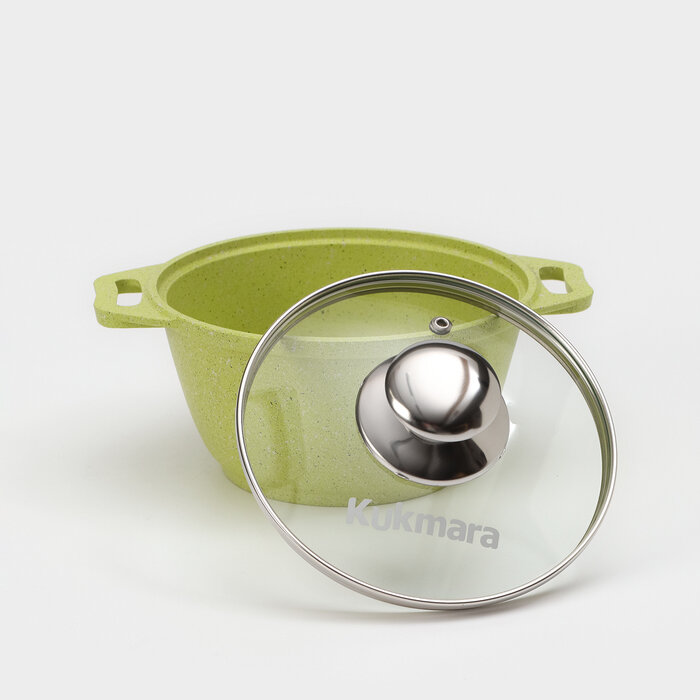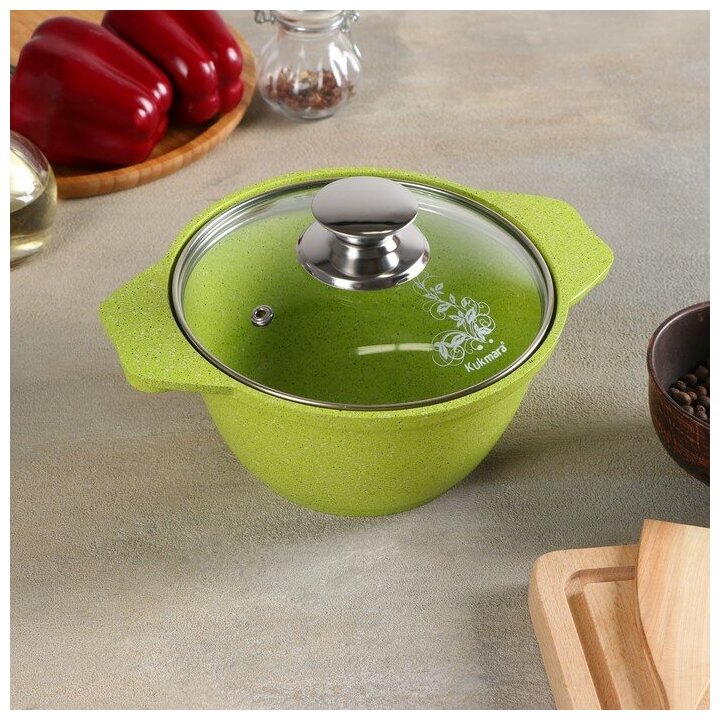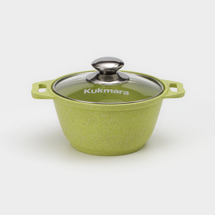Кастрюля Kukmara Trendy style, 2 л, стеклянная крышка, антипригарное покрытие, лайм