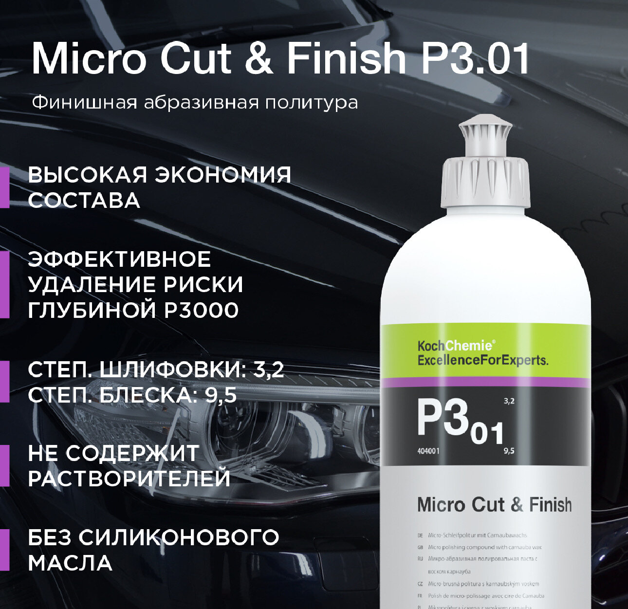 СохранитьExcellenceForExperts | Koch Chemie MICRO CUT & FINISH P3.01 - Антиголограммная финишная паста с воском карнауба. (1л) интересное: