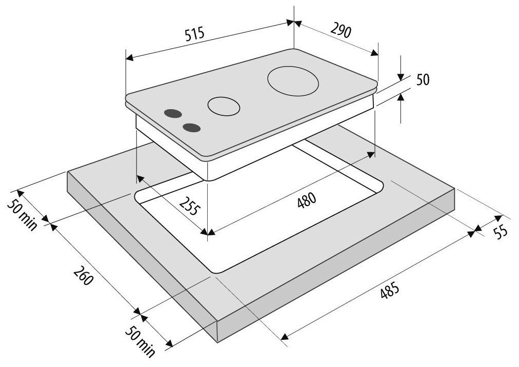 | Общее количество конфорок | 2 |