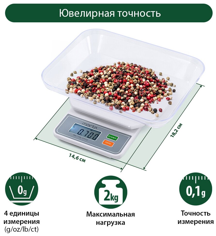 Весы Marta МТ-1643 высокоточные 0,5г кухонные белый жемчуг интересное: