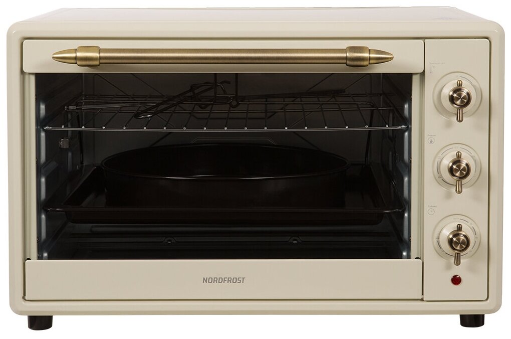 Мини-печь NORDFROST RC 600 YR, 2200Вт, 60л, конвекция, гриль, вертел, таймер до 120 минут, 5 режимов нагрева, бежевый ретро, противень для пиццы