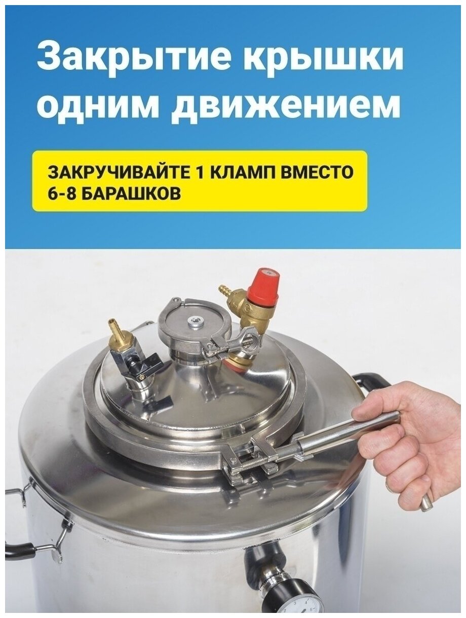 | Минусы: | При проверки температура 120 и давление 1 атм. не держит кран сброса воздуха на крышке. |