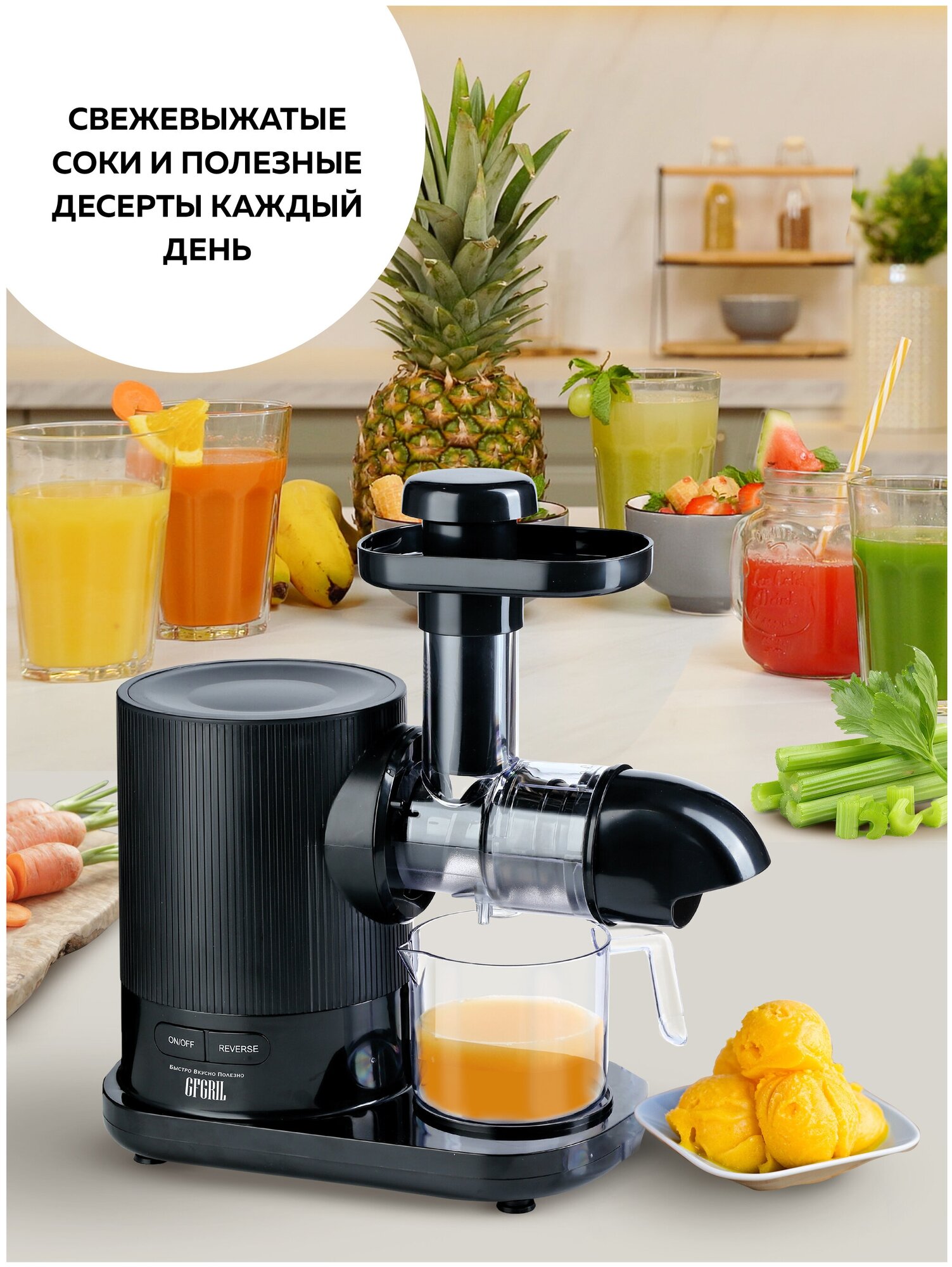 Купить Соковыжималка шнековая 2 в 1 GFGRIL GF-J20, приготовление сорбета, система легкой очистки EasyClean