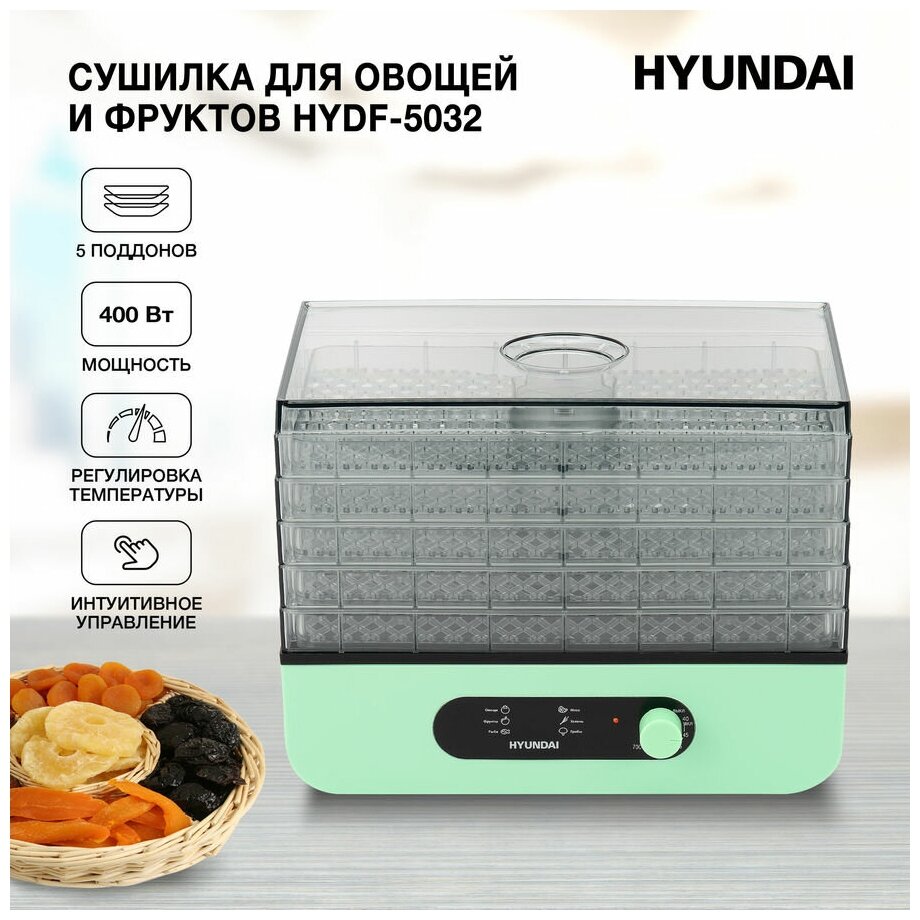 Сушилка для овощей и фруктов Hyundai HYDF-5032, мятный, 5 поддонов