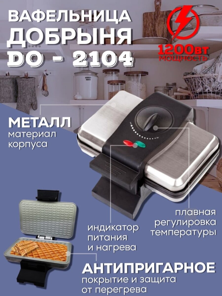 Ниже Вы можете прочитать отзывы на Вафельница Добрыня DO-2104 1000Вт, тонк. вафля,, ознакомится с подробными характеристиками, посмотреть интересные обзоры и фотографии на Вафельница Добрыня DO-2104 1000Вт, тонк. вафля,.