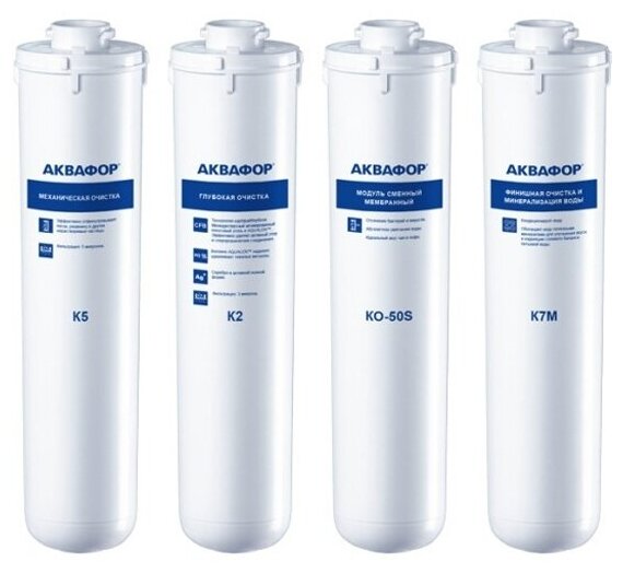Комплект картриджей сменных для воды Аквафор К5/К2/КО-50S/К7М, набор 4 шт