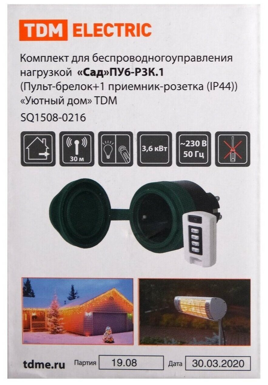 Купить TDM Electric Комплект беспроводного управления нагрузкой "Сад"ПУ6-Р3К.1 TDM (1 пульт брелок+1 розетка приемник) SQ1508-0216