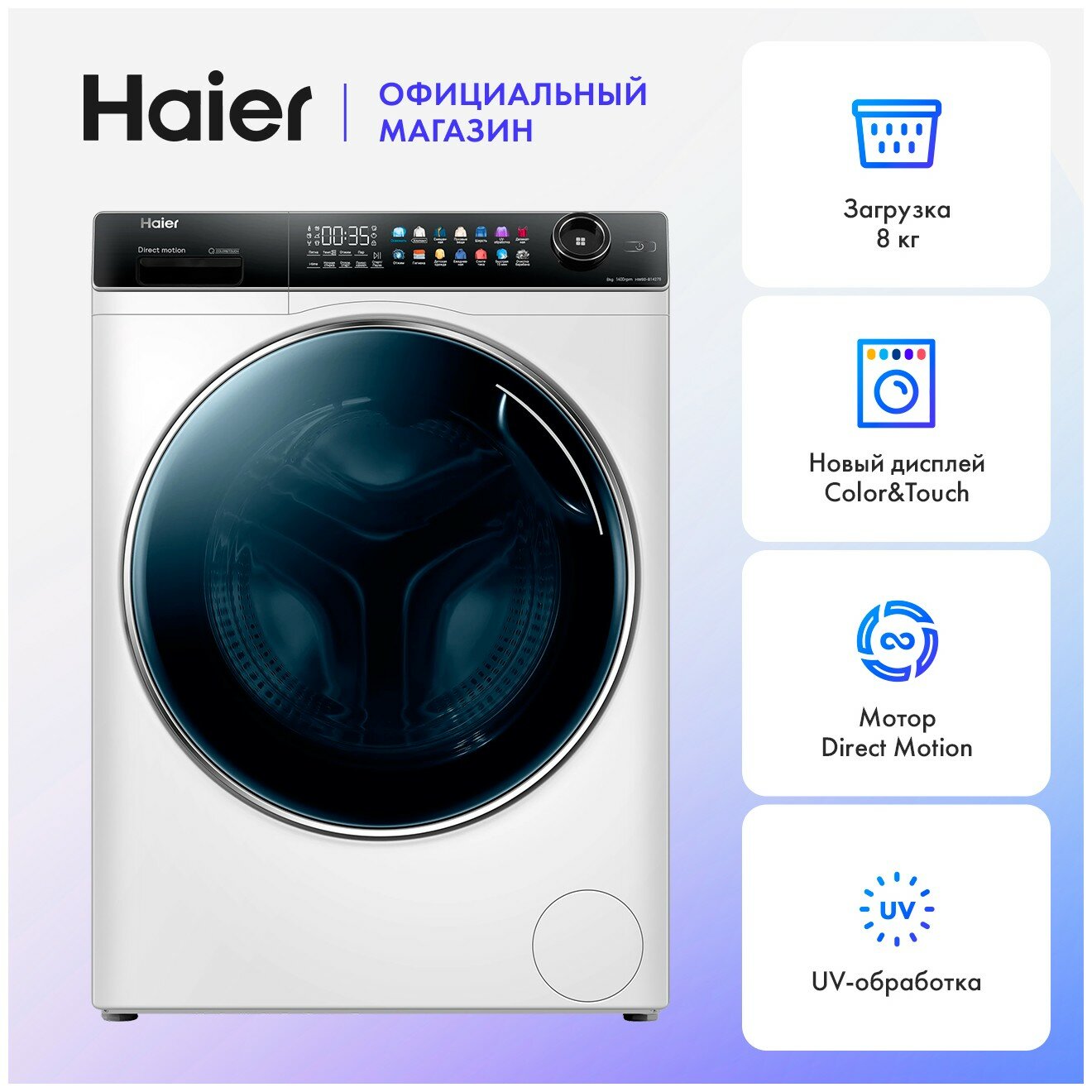 Стиральная машина Haier HW80-B14279, инверторный двигатель, 1400 об/мин