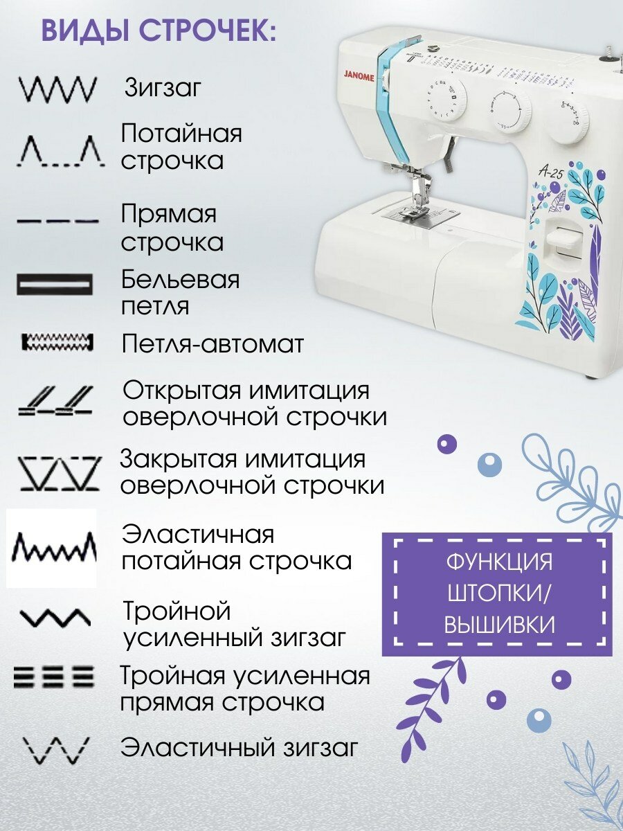 Швейная машина Janome A-25 белый интересное: