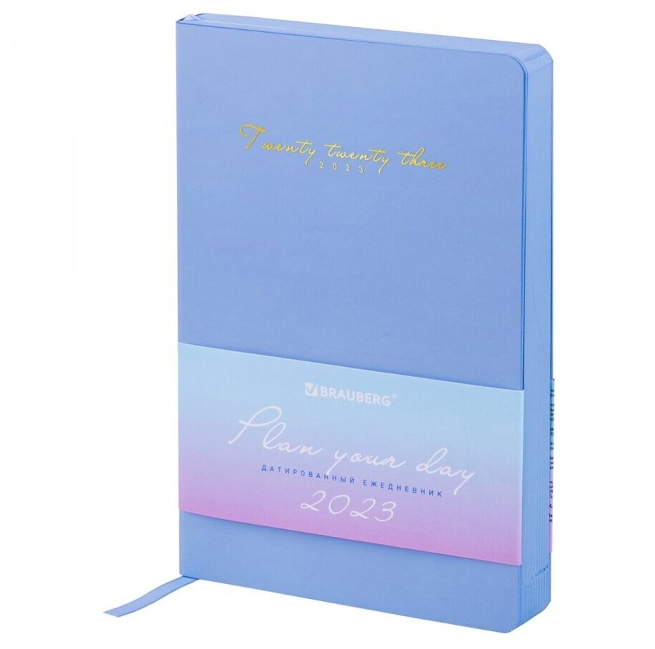Ежедневник-планер (планинг) / записная книжка / блокнот датированный на 2023 год формата А5 (138x213 мм) Brauberg Pastel, под кожу, синий