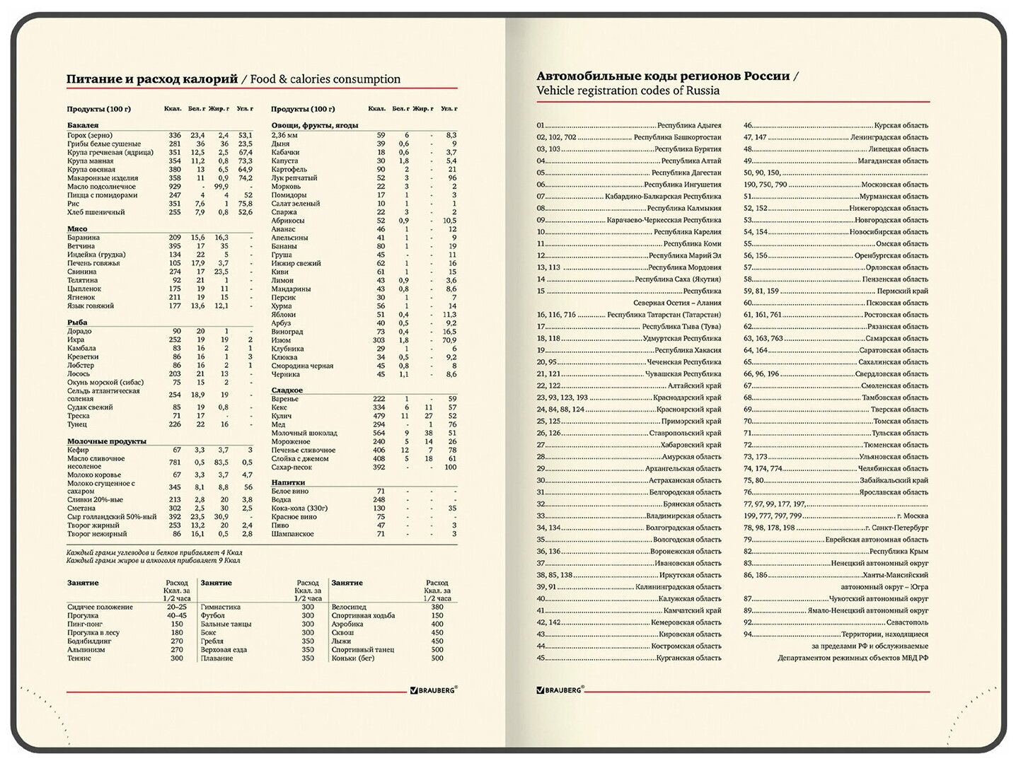 | Особенности | календарь / перфорация уголков / справочная информация / ляссе / закругленные углы |
