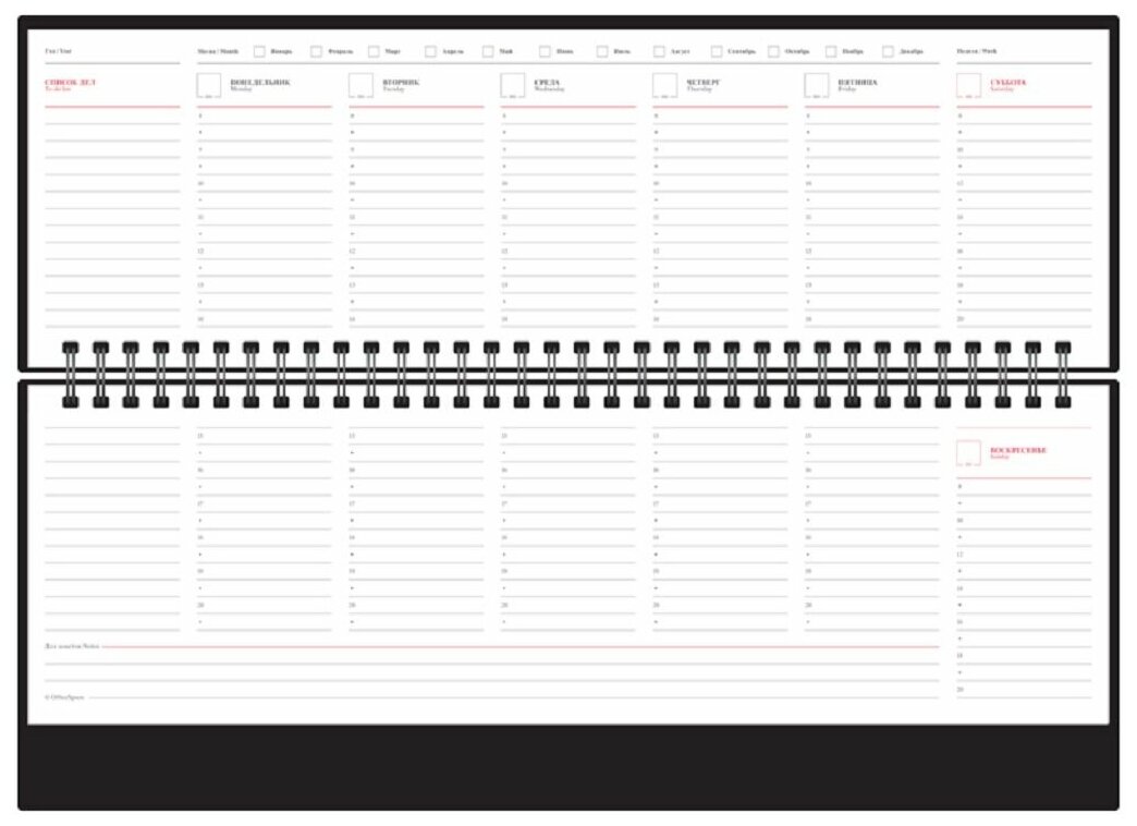 Планинг недатированный OfficeSpace "Nebraska",, 330*130 мм, 56 л., кожзам, черный