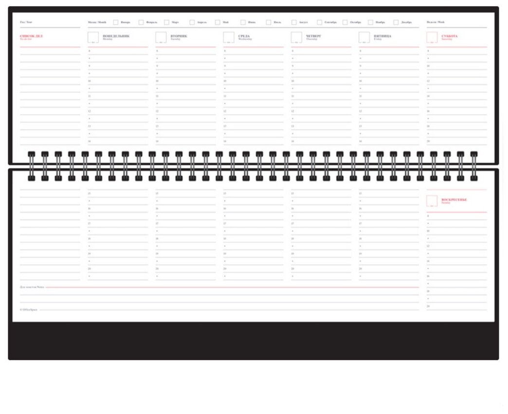 Планинг недатированный OfficeSpace "Nebraska",, 330*130 мм, 56 л., кожзам, черный