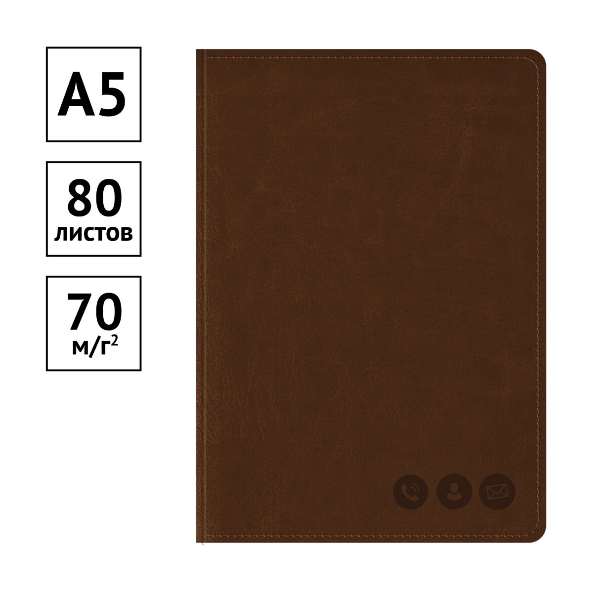 Телефонная книга А5, 80л., кожзам, OfficeSpace "Nebraska" коричневый с вырубкой, 326518