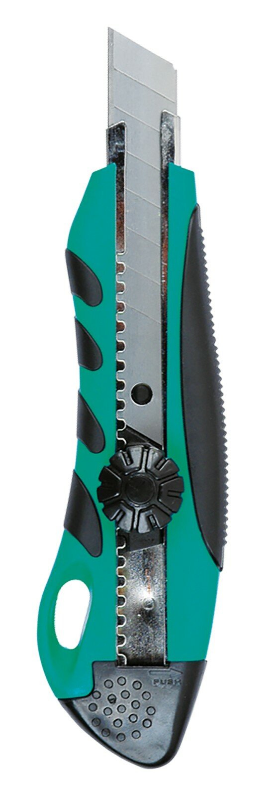 Нож канцелярский STANGER усиленный 18 мм комбинированный фиксатор зелен.