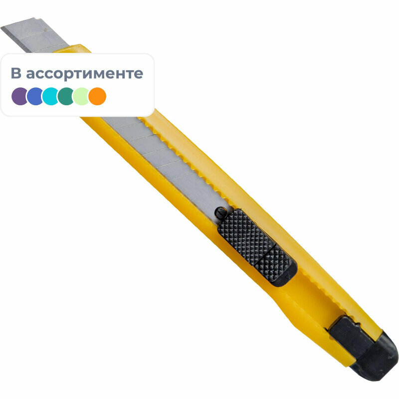 Нож канцелярский 9мм Attache с фиксатором, полибег, цв.в ассорт. интересное: