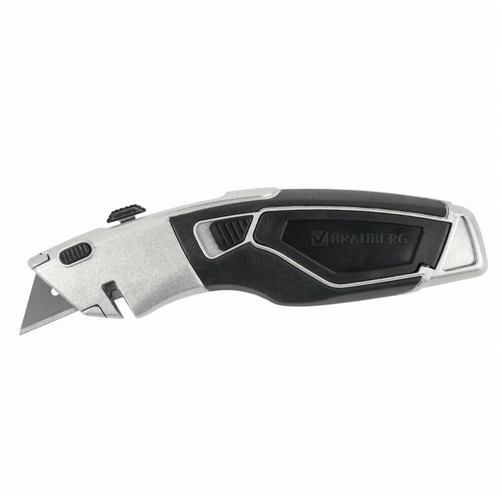 Нож универсальный мощный BRAUBERG "Professional", 4 лезвия в комплекте, автофиксатор, металл, 237160