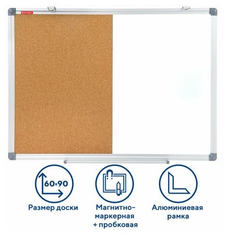 Доска комбинированная: магнитно-маркерная, пробковая для объявлений, 60×90 см, BRAUBERG «Extra»