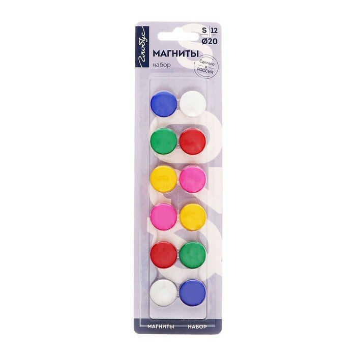 Магниты для досок 20 мм, 12 штук, цветные, в блистере