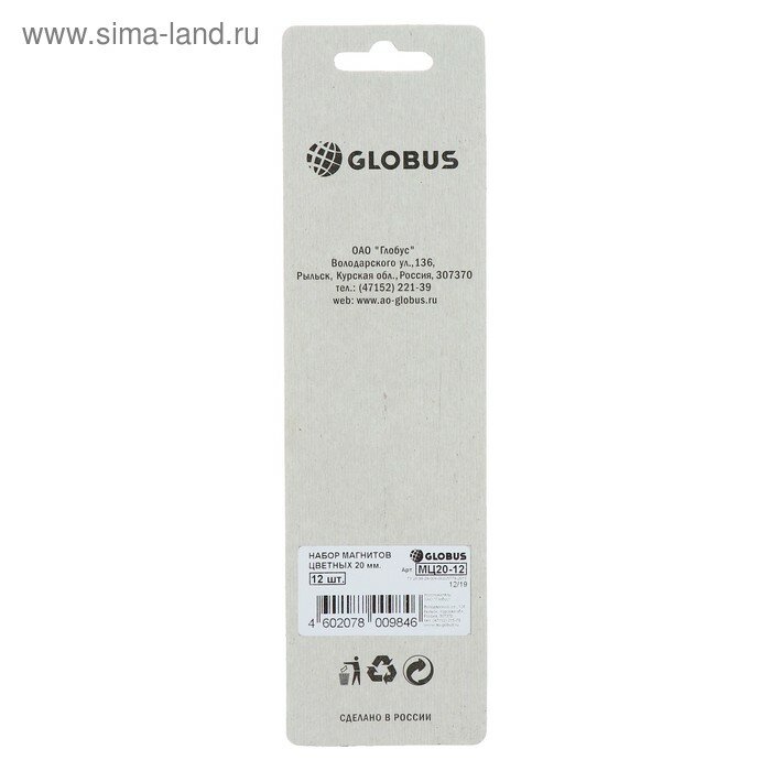 Купить GLOBUS Магниты для досок 20 мм, 12 штук, цветные, в блистере
