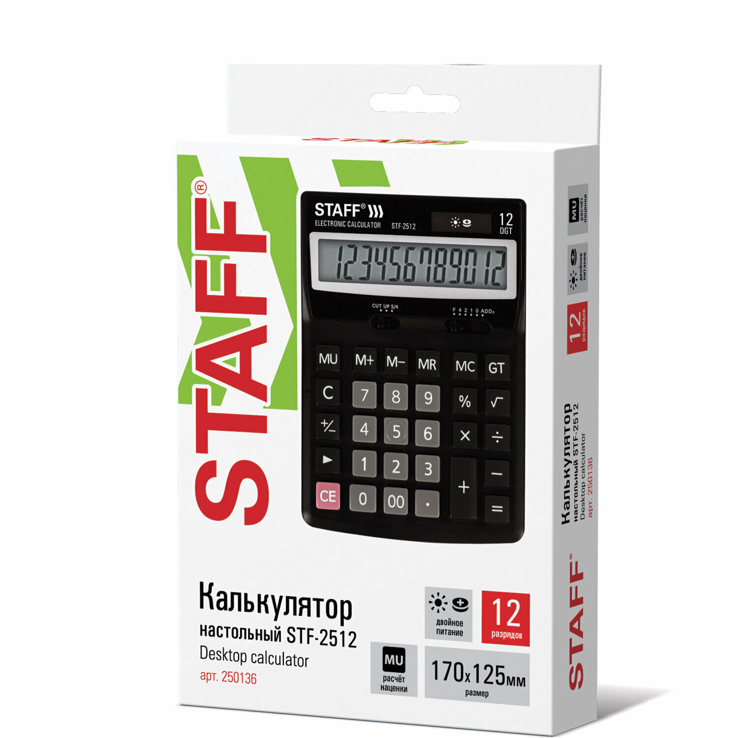Калькулятор настольный STAFF STF-2512 (170х125 мм) 12 разрядов двойное питание, 1 шт