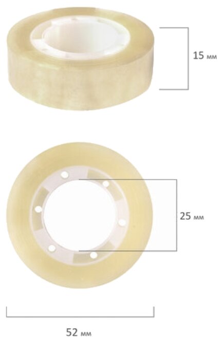 Клейкие ленты 15 мм х 33 м канцелярские BRAUBERG, комплект 10 шт., прозрачные, гарантированная длина, 227259 (арт. 227259)