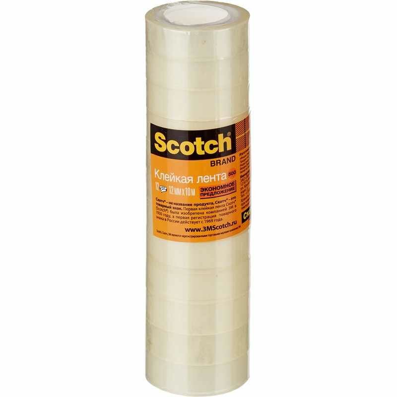 Клейкая лента канцелярская 3M SCOTCH 508/500 12х10 прозрачная, 12шт интересное: