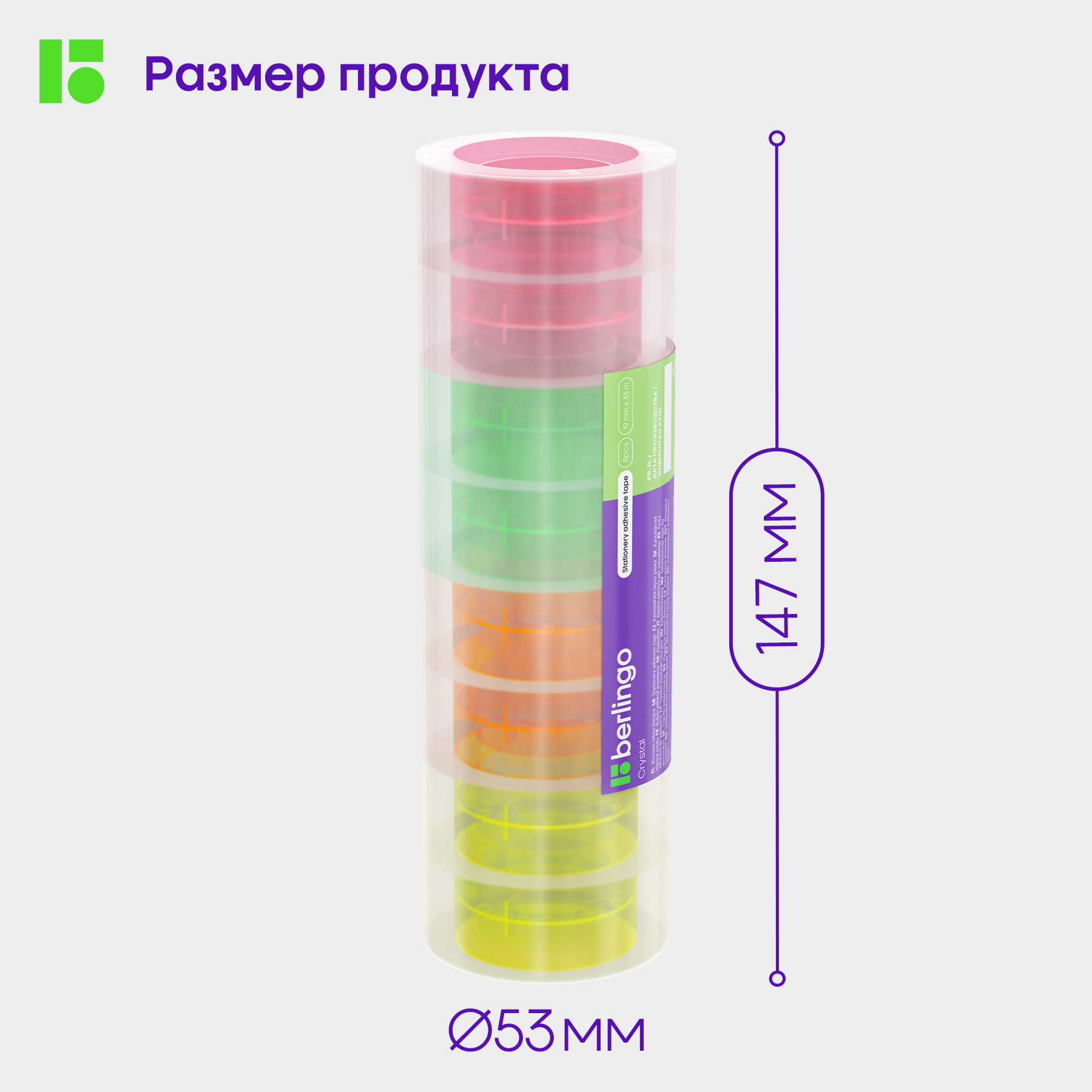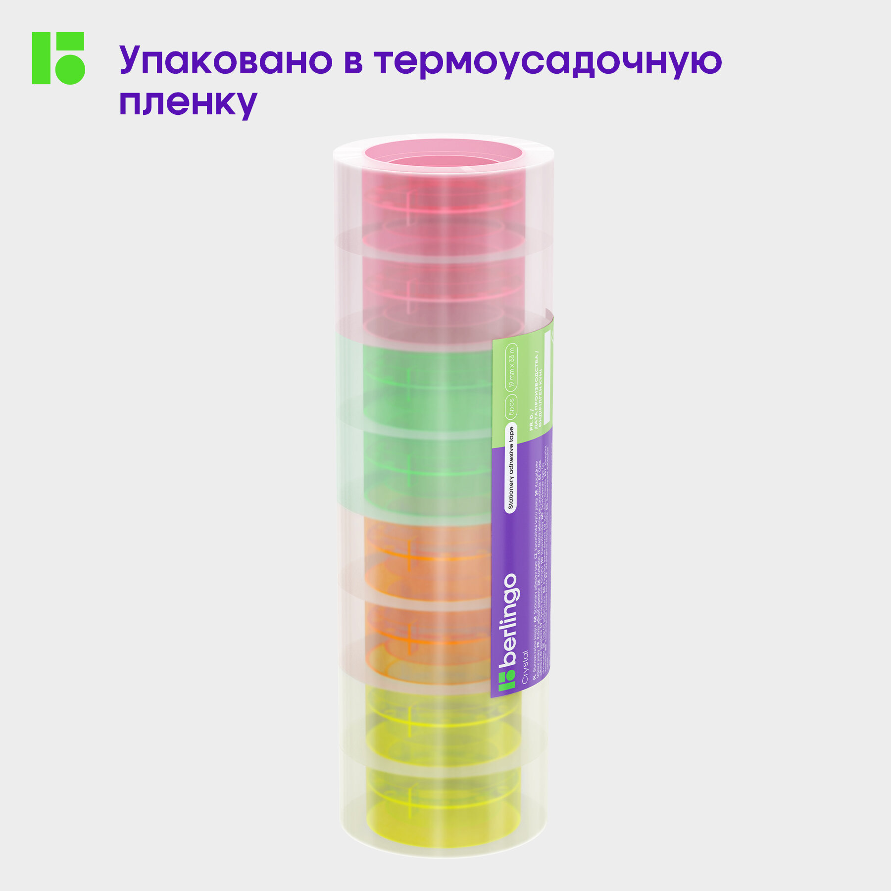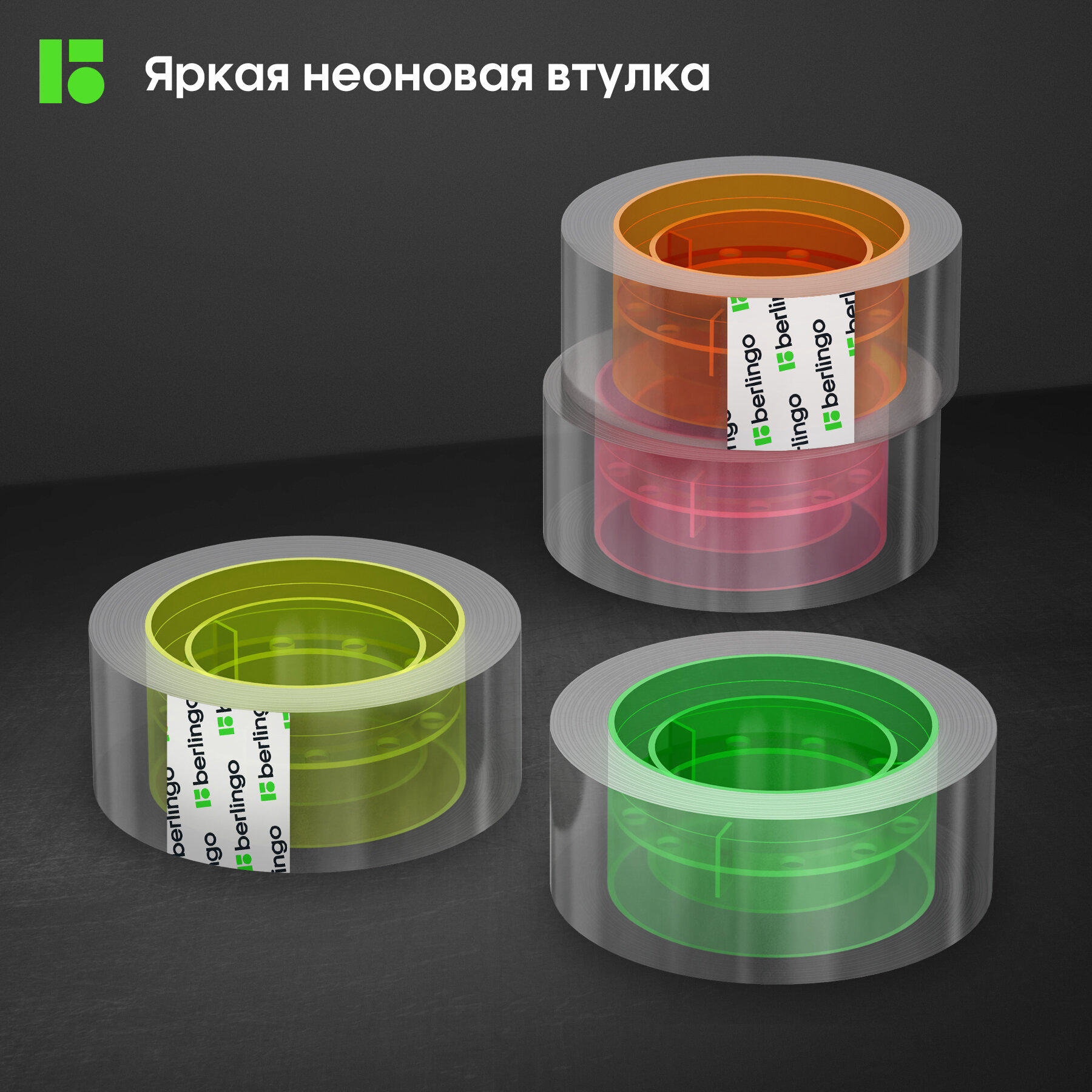Купить Клейкая лента 19мм*33м, Berlingo, кристально-прозрачная с неоновой втулкой