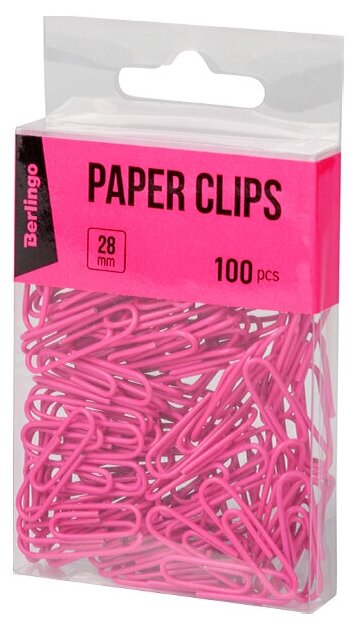 Скрепки Berlingo 28 мм, 100 штук, цветные, розовые (DBs_28100c)