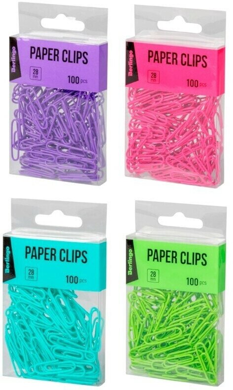 Скрепки 28мм, Berlingo, 100шт, цветные, ПВХ упак., европодвес, ассорти пастель И 4260709089935