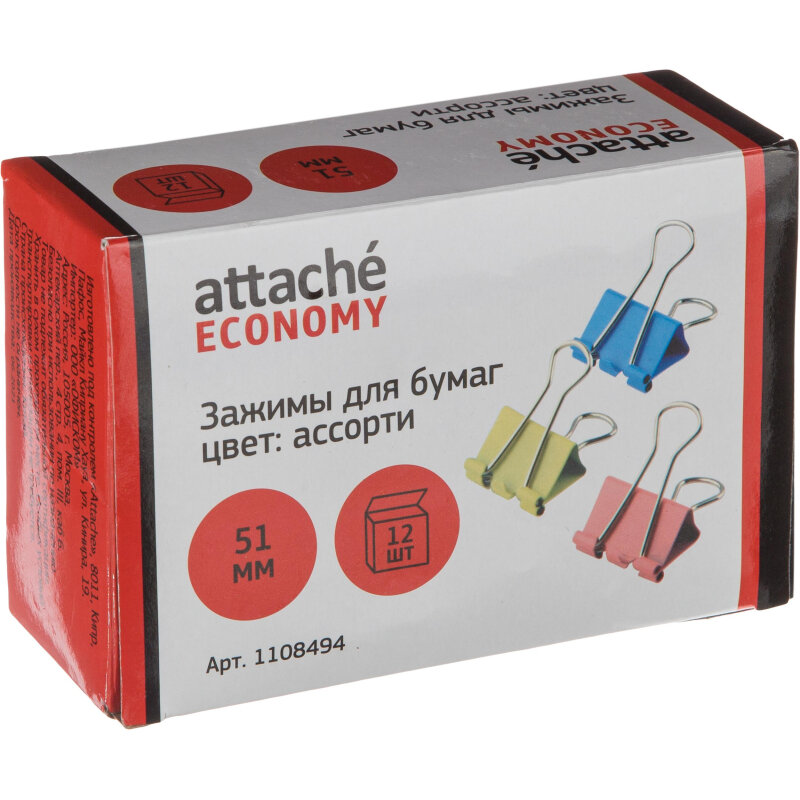 СохранитьЗажимы для бумаг 51мм 12шт/уп Attache Economy, цветные, в карт.коробке интересное:
