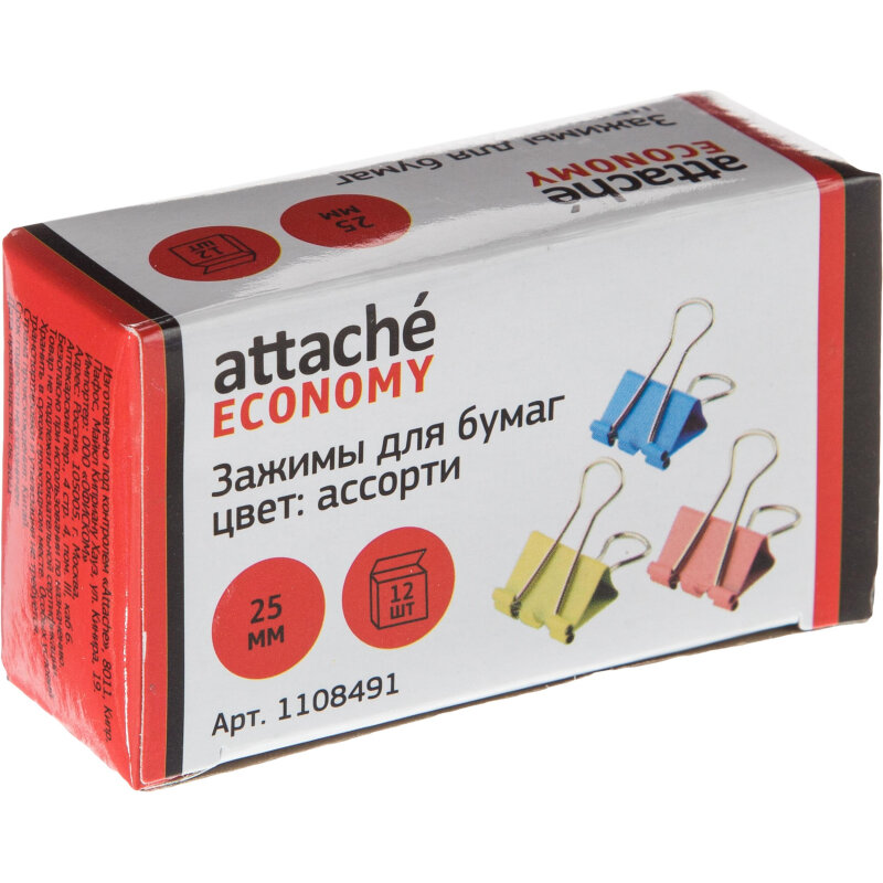 Зажим для бумаг 25мм 12шт/уп Attache Economy, цветные, в карт.коробке, 1108491